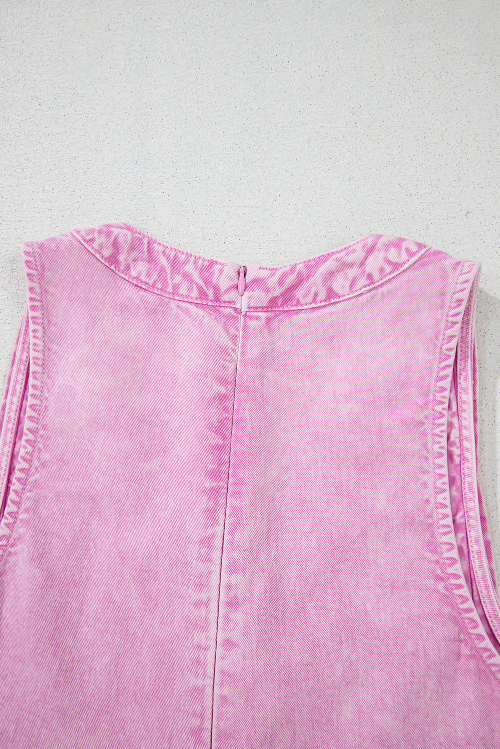 Bonbon Mineral Wash Pleated Bust V Neck Sleeveless Denim Romper