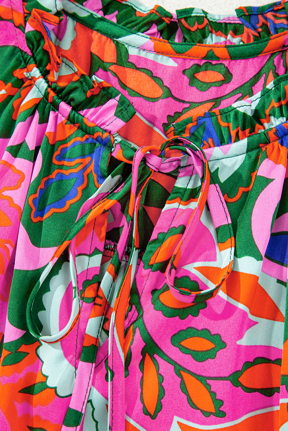 Rose Summer Plant Print Lace up V Neck Short Sleeve Blouse