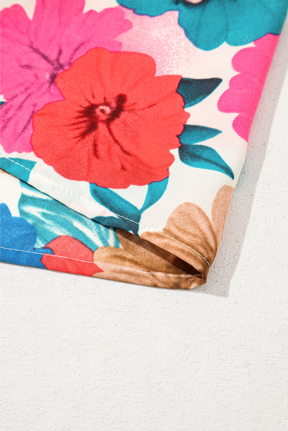 Sky Blue Floral Mock Neck Striped Flutter Sleeve Blouse