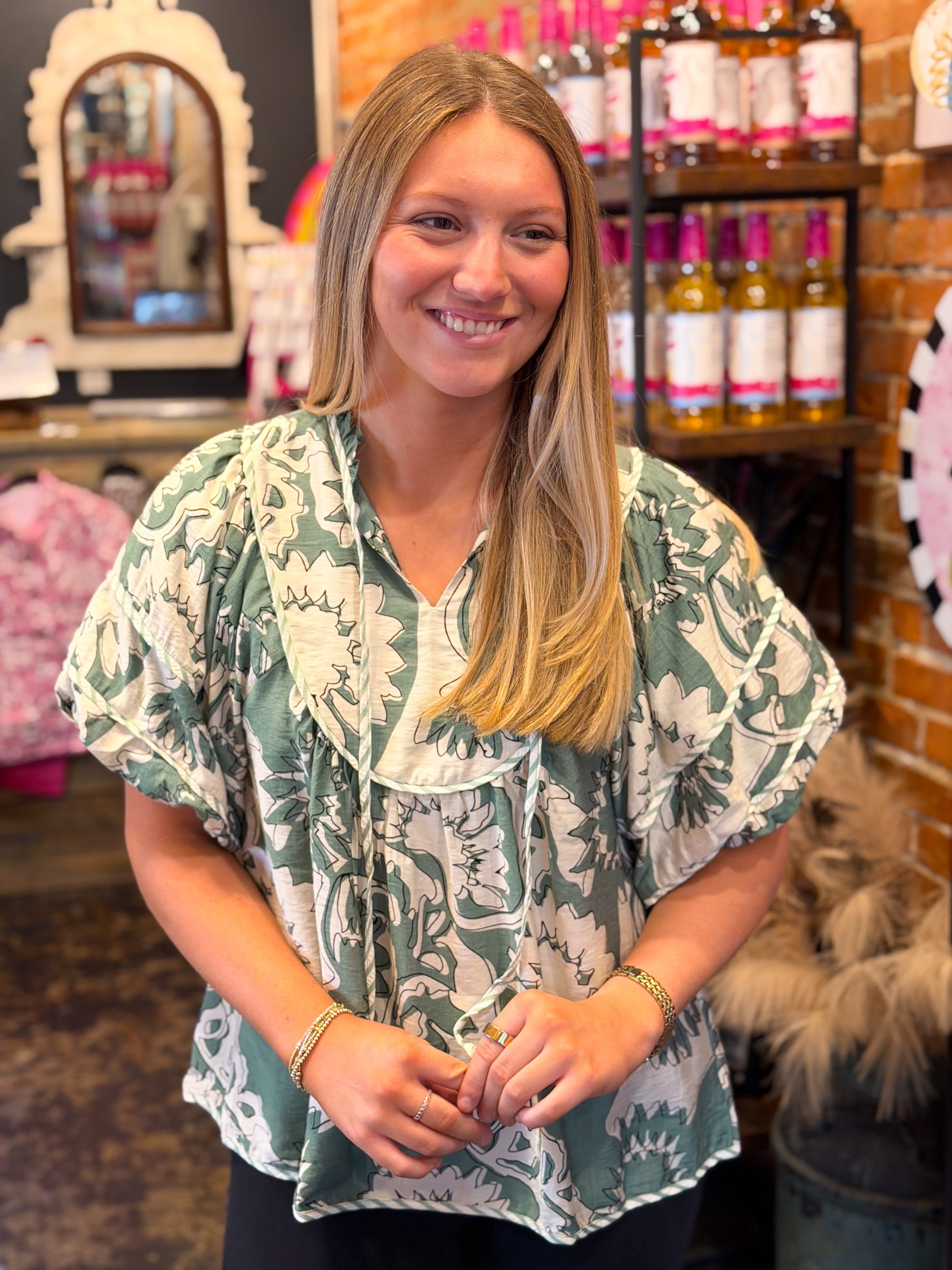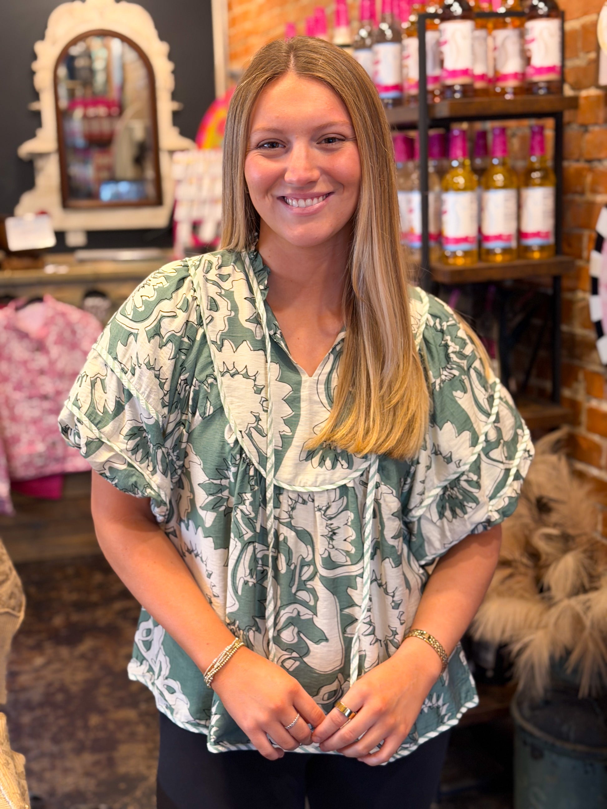 Upgrade your wardrobe with our stunning Sunset Puff Sleeve Top. The cute rust/brick floral design adds a touch of elegance, while the puff sleeve detail creates a flattering silhouette. Perfect for any occasion, this top will have you feeling confident and stylish.